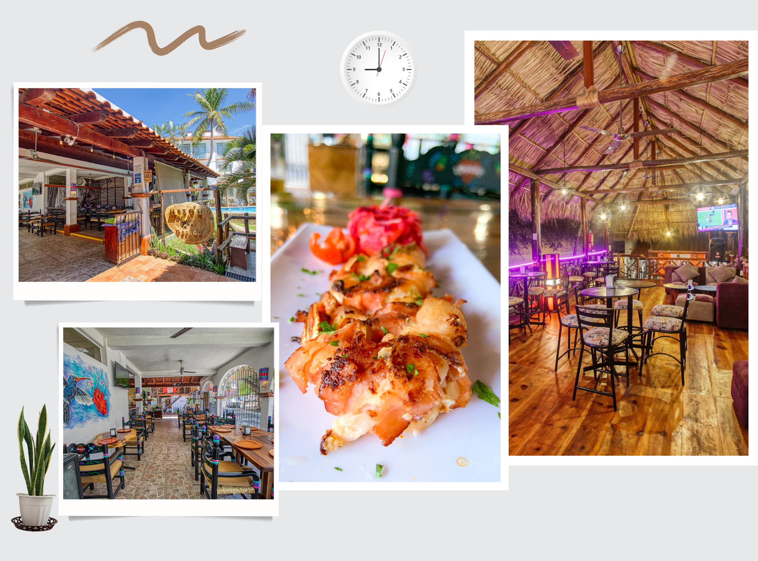 En la parte de bajo del Coworking Huatulco, podemos encontrar un restaurante “Mesón la Posada” con gran variedad de productos a la carta. Así mismo, a unos metros un bar “Charly´s Bar” donde puedes degustar de diferentes bebidas que este te ofrece.
