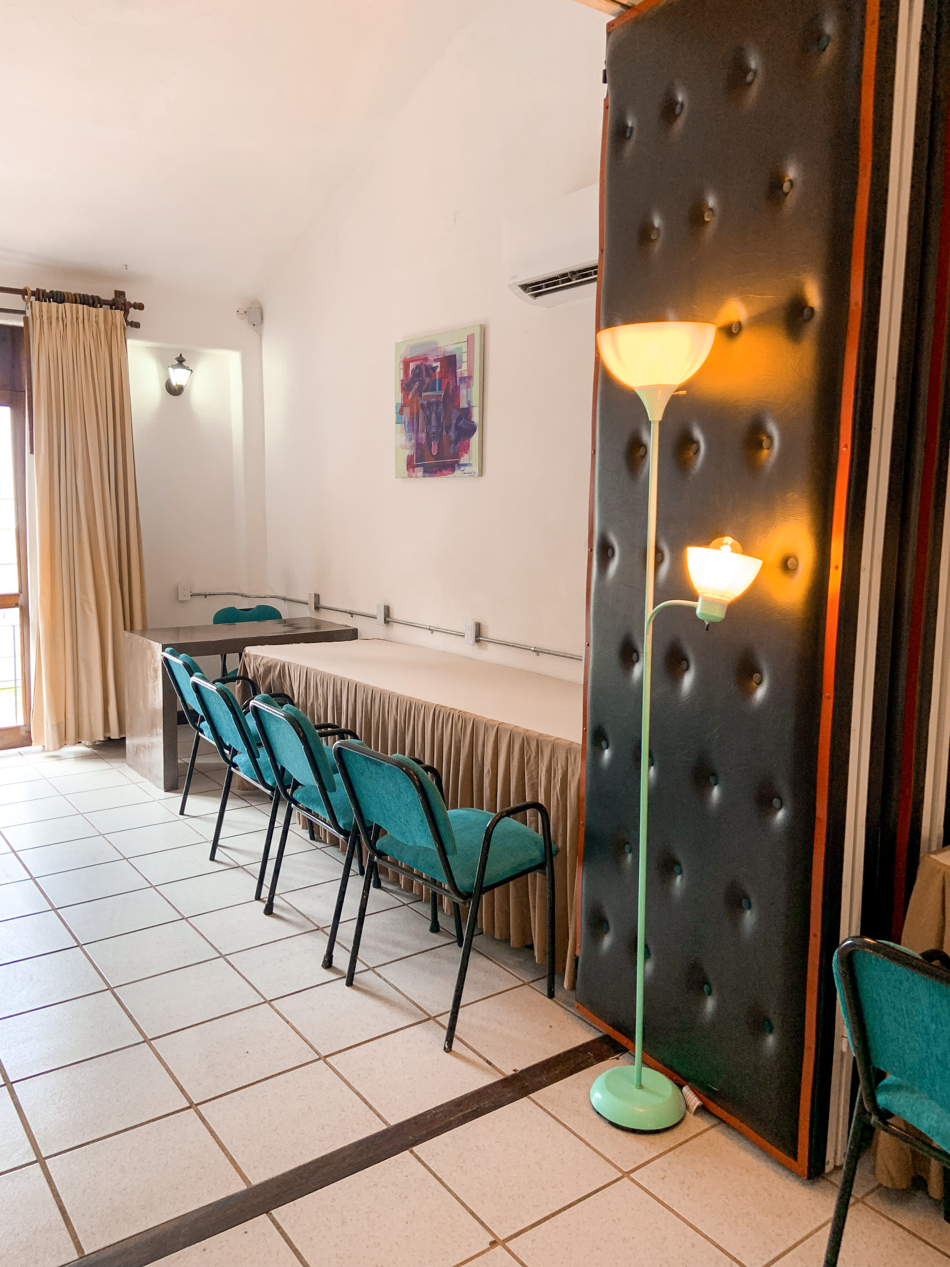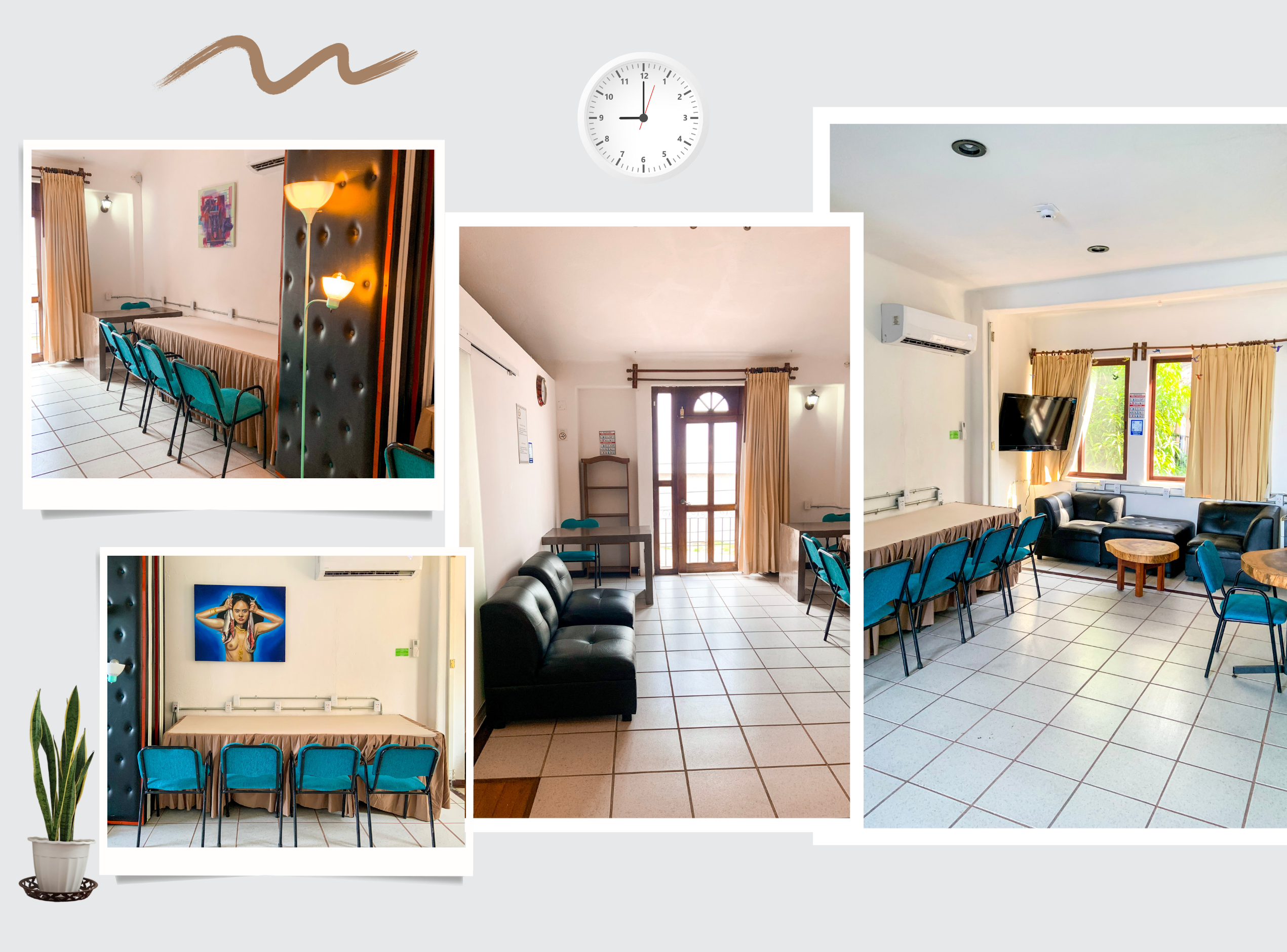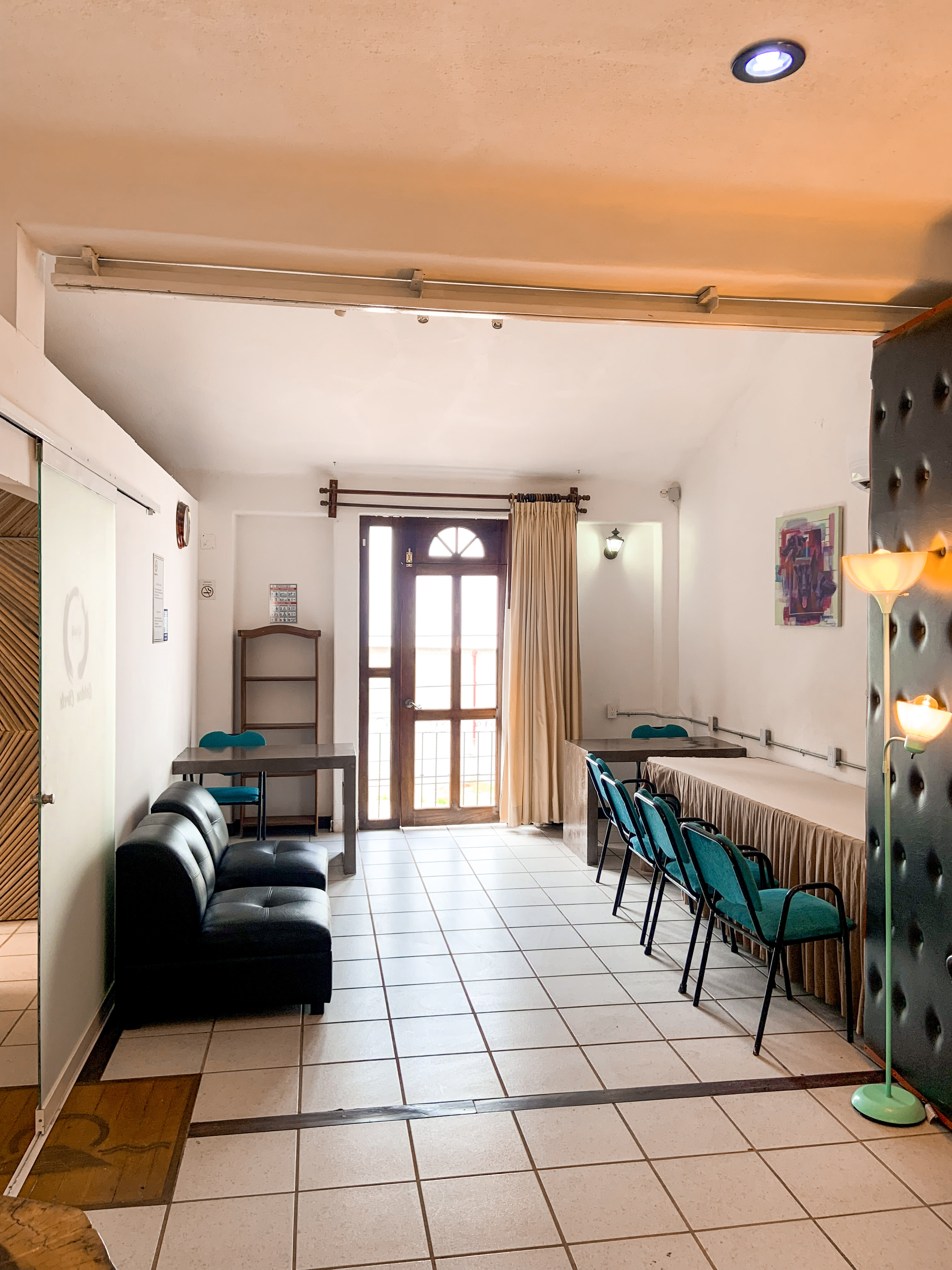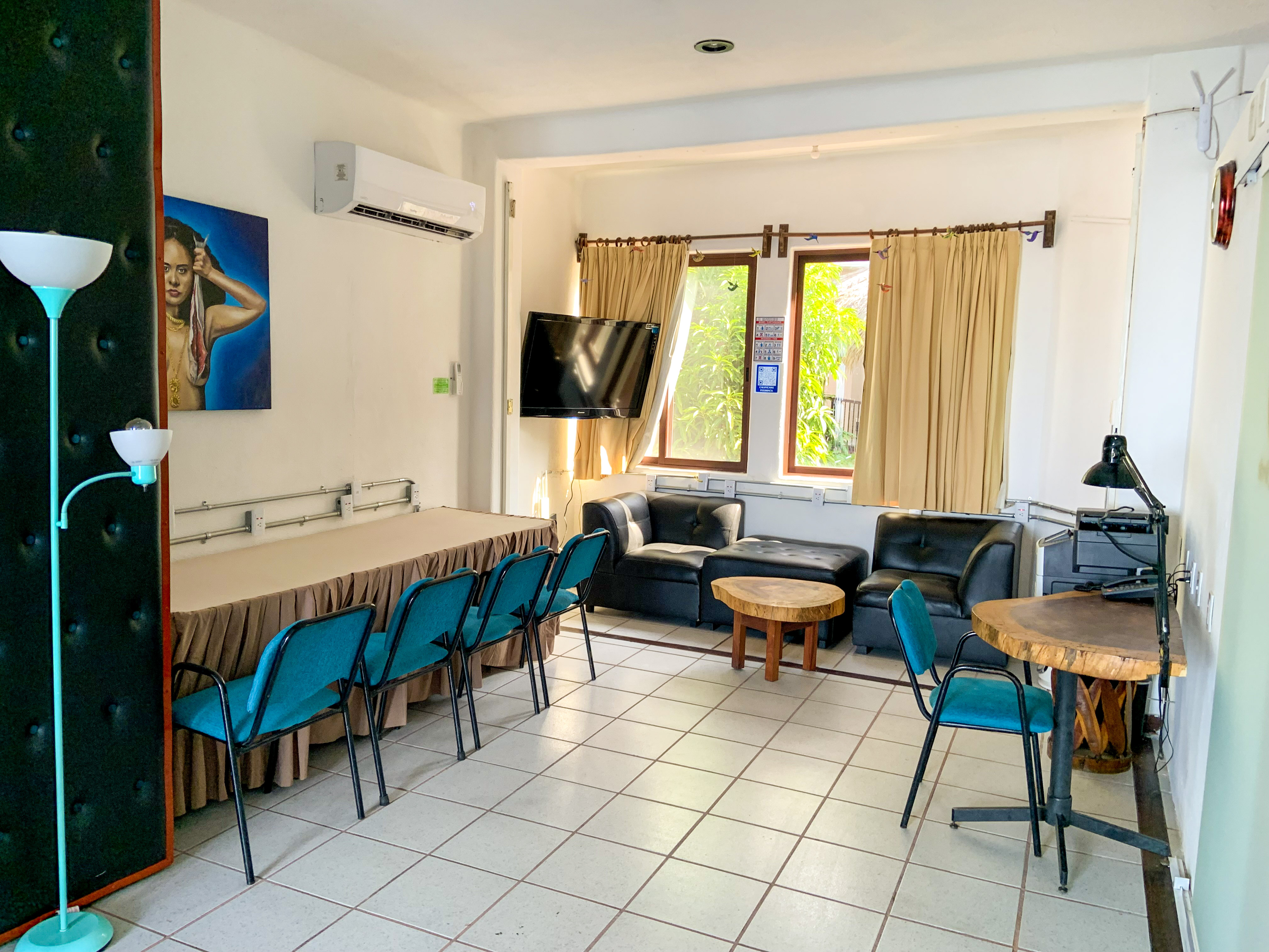 Contamos con dos espacios para sala donde en la primera puedes compratir con hasta 7 personas y la sala 2 con hasta 5 personas. Tambien se puede unir las salas uno y dos.